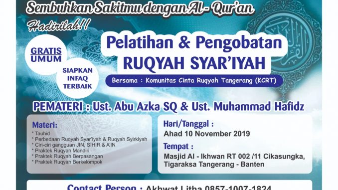 PELATIHAN DAN PENGOBATAN RUQYAH SYAR’IYYAH MANDIRI GRATIS TIGARAKSA – TANGERANG, CILEDUG – TANGERANG
